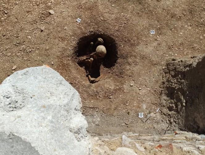 Он находился на дне метровой круглой ямы, сидя с руками на коленях, опираясь спиной на восточную стену и «глядя» на запад. Ранее в марте рядом нашли еще четыре подобных захоронения, а в прошлом году на этой же стройплощадке раскопали 13 тел.