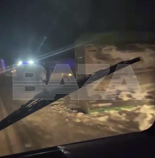 На встречной полосе от грузовика оторвался прицеп с модульным домом, который врезался в их машину.